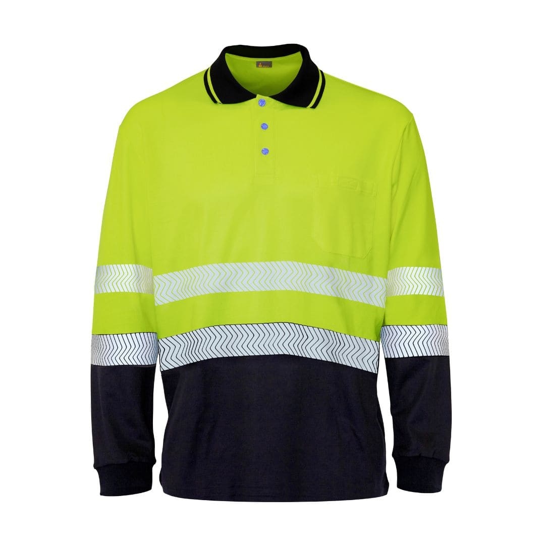 Polo calado bicolor manga larga doble cara, 1 bolsillo con velcro en pecho, cuello contraste, transpirable en sisa.Tratamiento antibacteriano Silver Plus, UPF 50+ Protección superior al 97% contra la radiación UVA y UVB. 2 bandas reflectantes termoselladas segmentadas en torso.