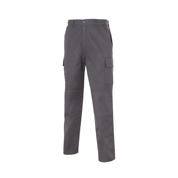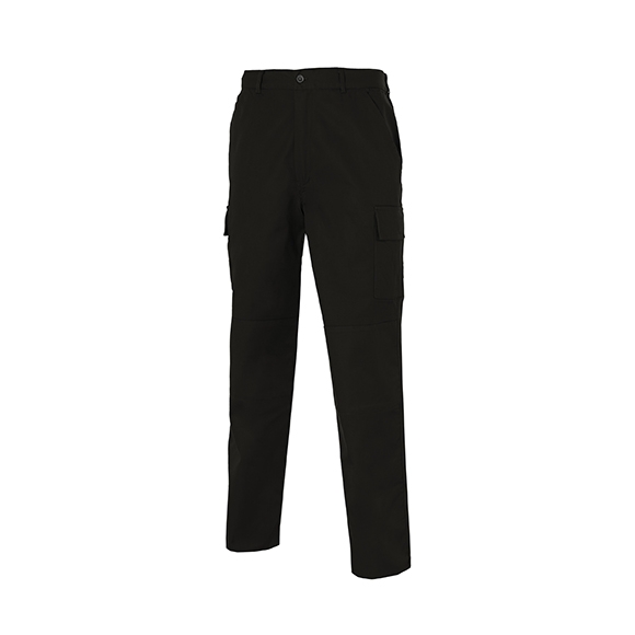 Pantalón gomas laterales, 2 bolsillos delanteros inclinados, relojera, 1 bolsillo trasero de parche con tapeta y clip, 2 bolsillos laterales de parche con fuelle, tapeta y velcro en ambas piernas. Forrería mismo tejido. Refuerzo en culera y rodilleras.