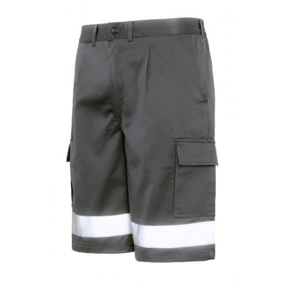 Bermuda 1/2 ceinture élastique dans le dos, 2 poches avant inclinées, poche-gousset, 1 poche arrière plaquée. con pince, Deux poches latérales plaquées et soufflées, àrabats et pourvues de velcro sur les deux jambes. 1 bande réfléchissante.
