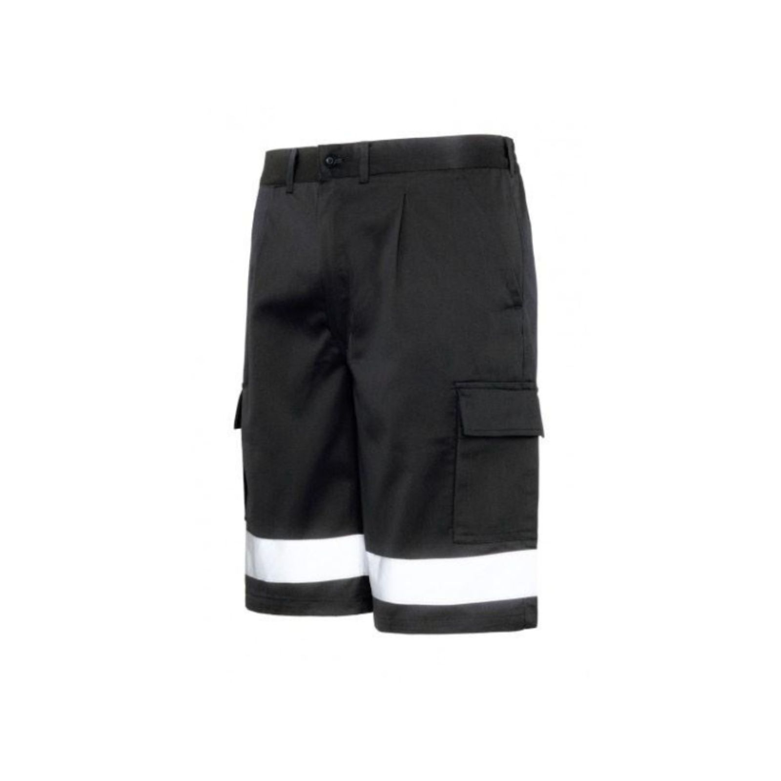 Bermuda 1/2 ceinture élastique dans le dos, 2 poches avant inclinées, poche-gousset, 1 poche arrière plaquée. con pince, Deux poches latérales plaquées et soufflées, àrabats et pourvues de velcro sur les deux jambes. 1 bande réfléchissante.
