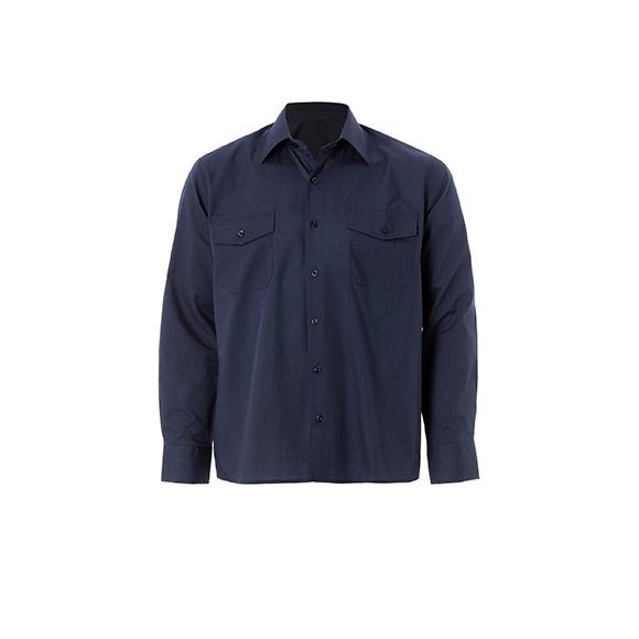 Chemise longue, Deux poches portefeuille., poignets boutonnière et bouton. Empiècement et pinces dans le dos..