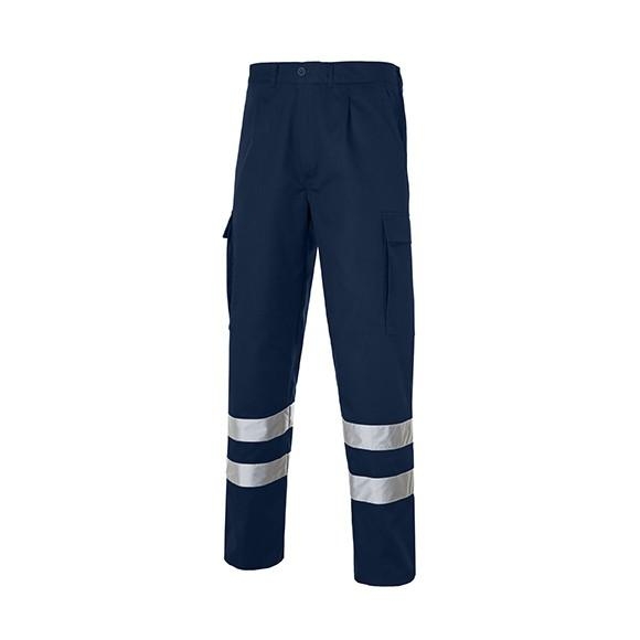 Pantalon 1/2 ceinture élastique dans le dos, 2 poches avant inclinées, poche-gousset, 1 poche arrière plaquée. con pince, Deux poches latérales plaquées et soufflées, àrabats et pourvues de velcro sur les deux jambes. Doublure même tissu. 2 bandes réfléchissantes.
