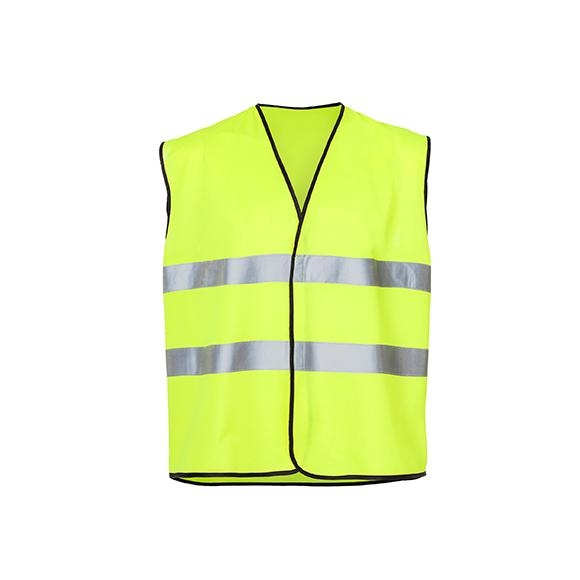 Smooth mesh monocolour waistcoast with 2 reflective stripes on body. Velcro close. Black piiping.