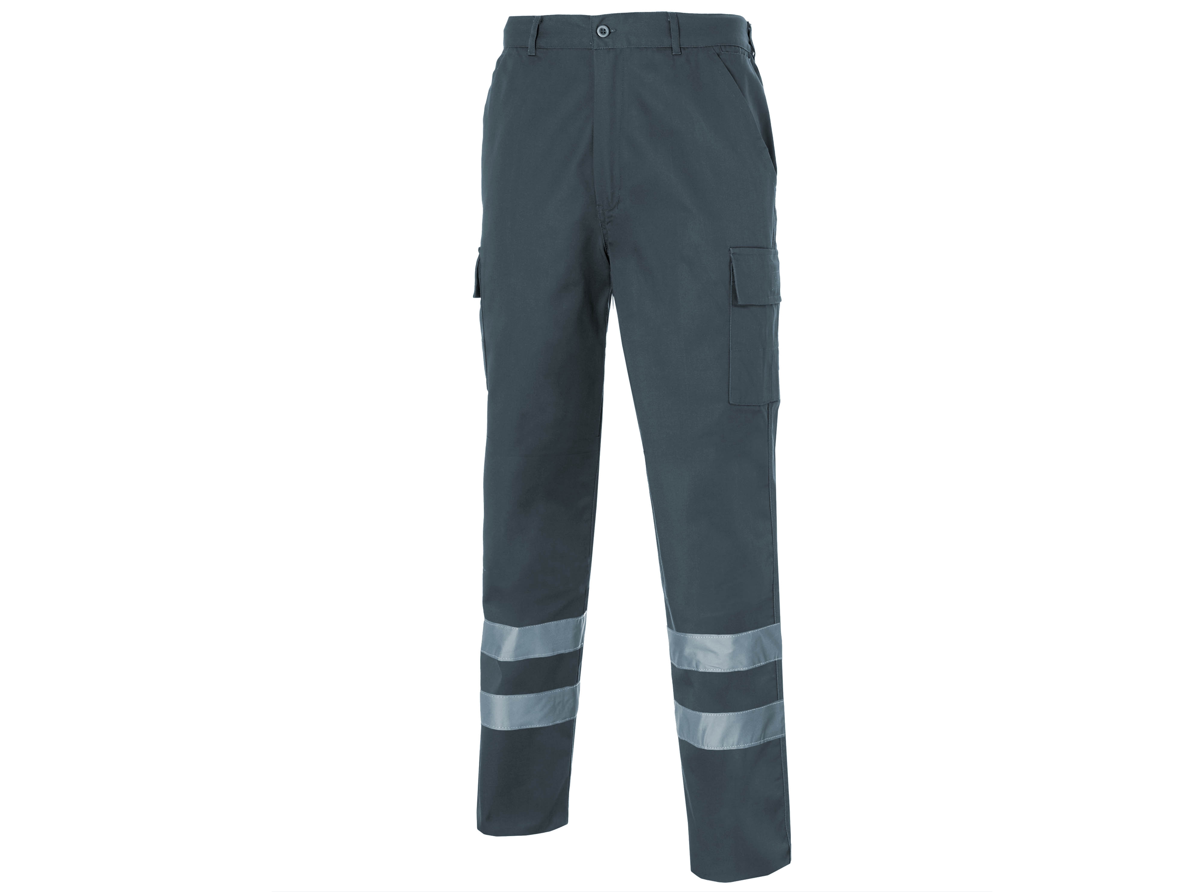 Pantalón elastano 1/2 cintura elástica espalda, 2 bolsillos delanteros inclinados, relojera, 1 bolsillo trasero de parche con clip, 2 bolsillos laterales de parche con fuelle, tapeta y velcro en ambas piernas. Presillas más anchas. Forrería mismo tejido. 2 bandas reflectantes